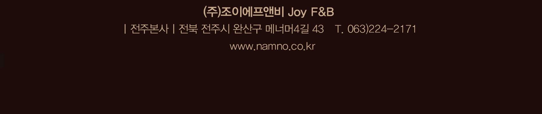 (주)조이에프앤비 | 063) 224-2171 | www.namno.co.kr